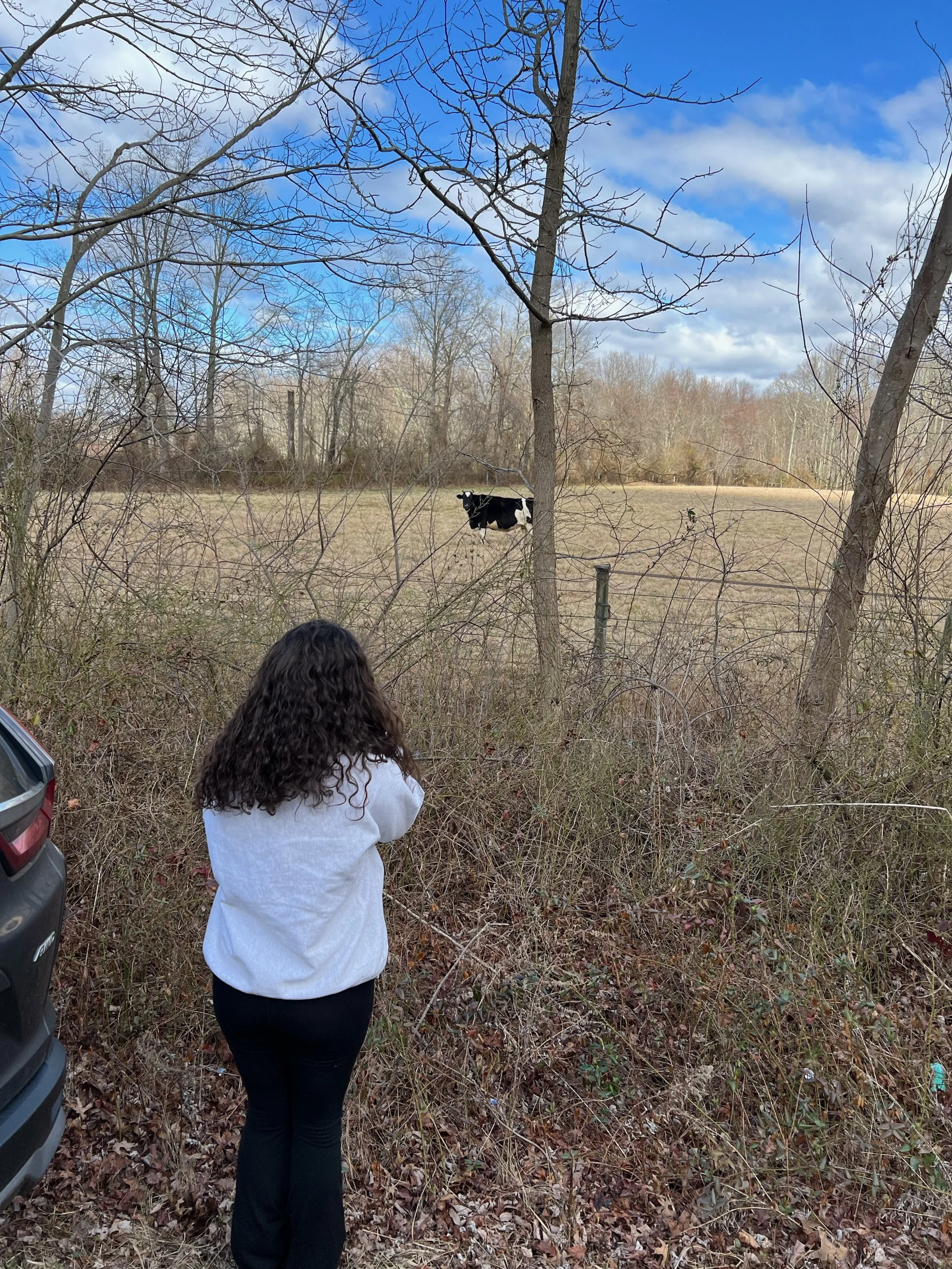 I visited a local farm (Kyle Family Farm) to take photos of produce. I then drove around in hopes of finding a cow (luckily not uncommon in central Jersey) and pulled over on the side of a busy road to achieve that photo. To add some fun texture, I used lemon as a stamp and incorporated it into multiple spreads. All of the photos are my own.