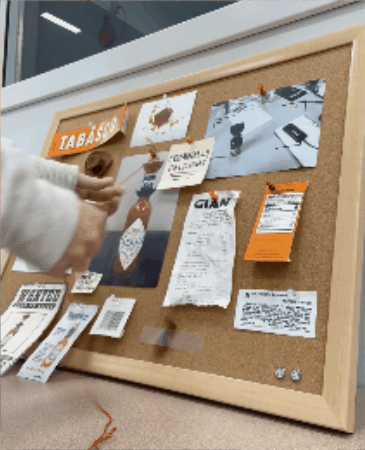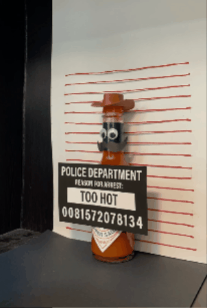 After sketching my ideas, I started making them come to life. To maintain the humorous theme, I gathered items to add to my evidence board, including TABASCO packaging, fabricated security camera footage, and a receipt.